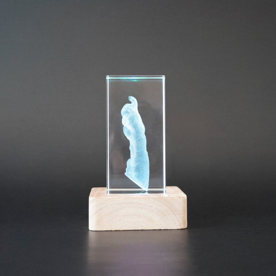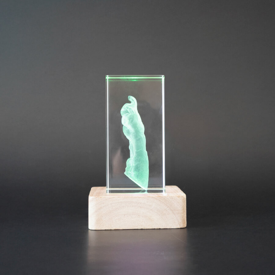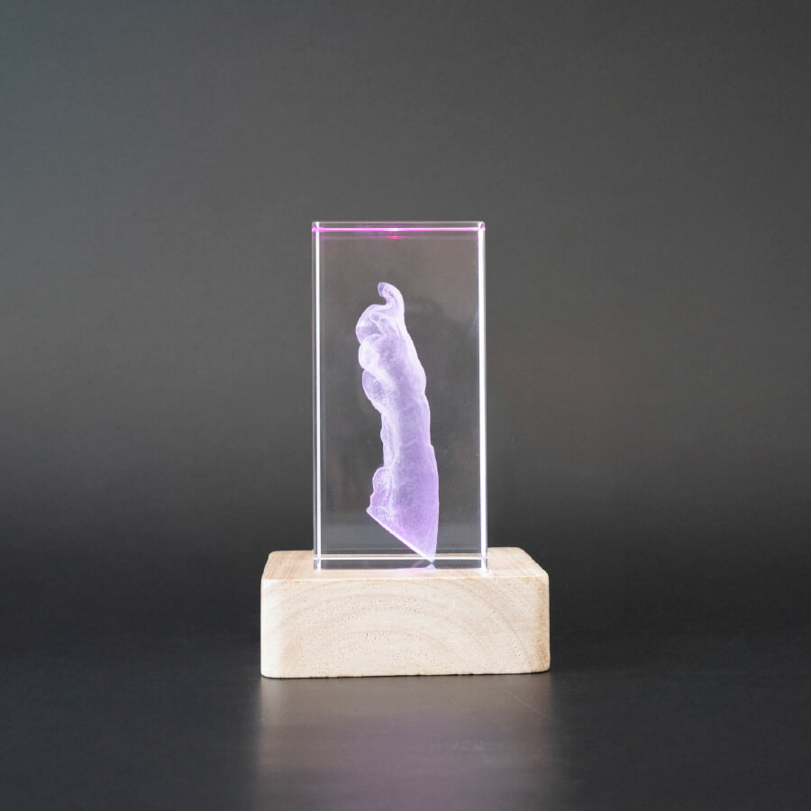 Honour your beloved companion with the radiant beauty of the 3D crystal paw print memorial, a timeless pet keepsake that preserves their memory in extraordinary detail. Created from a precise 3D scan of your pet’s paw print, the crystal is intricately engraved to capture every line and curve, then displayed on a premium timber base with soft LED illumination.