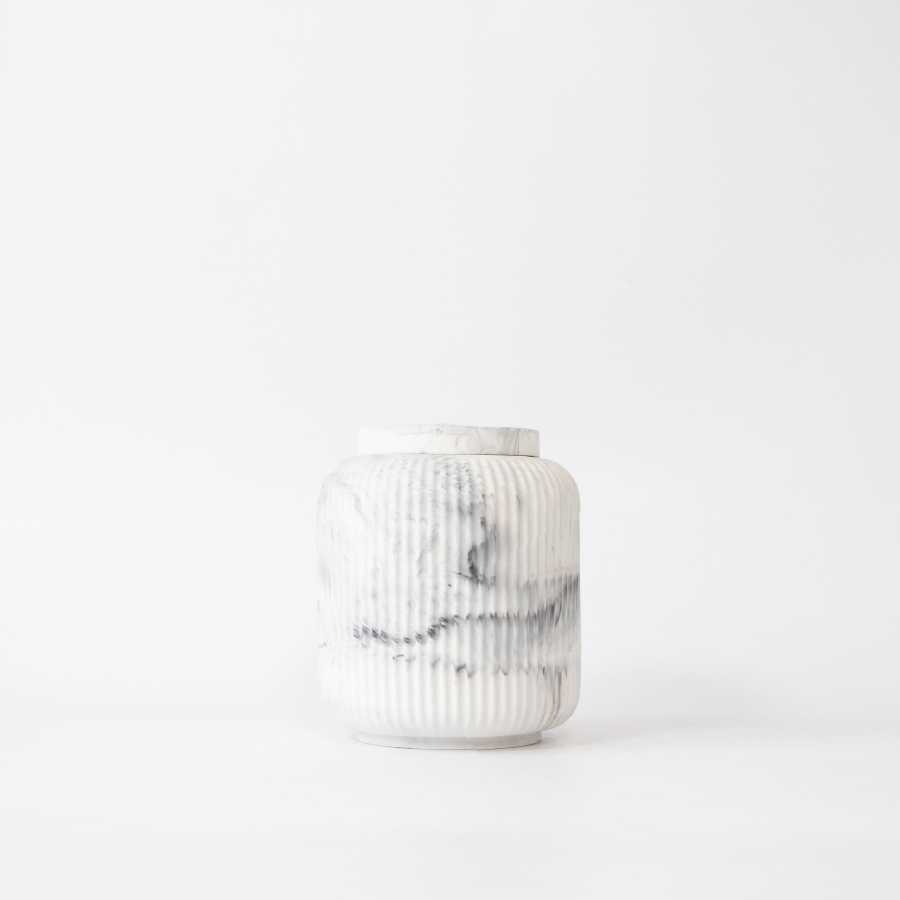 Celebrate the memory of your stylish companion with the fluted contemporary urn—a modern pet cremation urn that brings sophistication and beauty to remembrance. Made from marbled ceramic and detailed with elegant fluting, its sleek silhouette is designed to complement contemporary interiors while honouring a life well-lived.